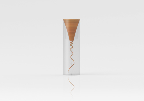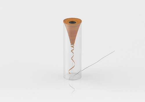 テープ状にしたブナ材をコイル状に巻き上げる、その独自の技法を、インテリアにも馴染むスピーカーに取り入れたデザイン計画です。